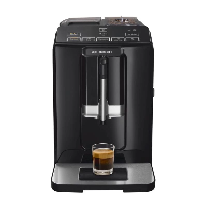 *100 dages tilfredshedsgaranti eller pengene tilbage Bosch Fuldatumatisk Espresso/ kaffemaskine. Kan også lave mælkeholdige kaffe som fx Cappucino og Latte Machiatto ved ét tryk Touch knapper Keramisk kværn sikrer lavt lydniveau Sensoflow sikrer samme temperatur ved hver kop Hurtig opstart – ca. 30 sekunder Vandtryk på 15 bar 3 bønnestyrker Hurtig mælkeopskumning 250 g. kaffebønnebeholder *100 dages tilfredshedsgaranti. Registrer dit produkt hos Bosch indenfor 14 dage efter køb, så har du 100 dage til at afprøve maskinen. Er du ikke tilfreds kontaktes Bosch og de afhenter maskinen på din adresse og returnerer pengene