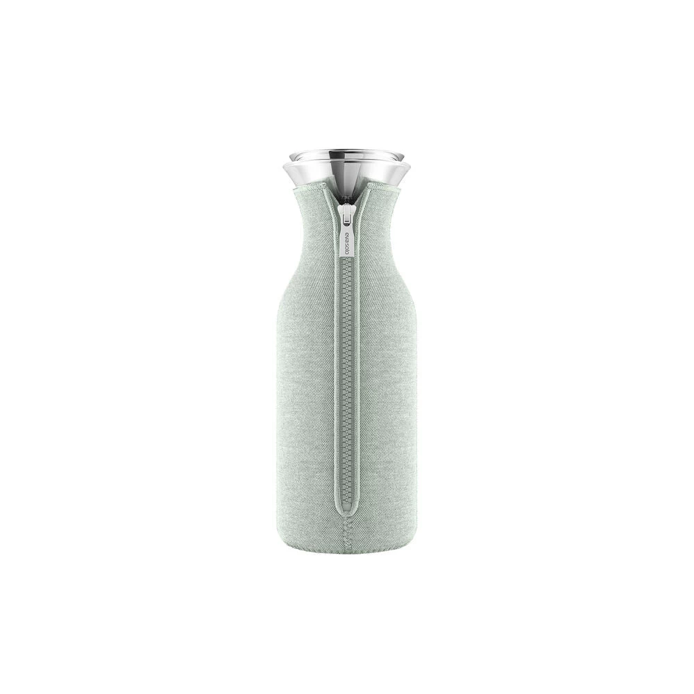 Eva Solo køleskabskaraffel 1,0 liter Denne er næsten uundværlig når der skal sørges for fx et dejligt koldt glas vand eller forfriskende juice. Køleskabskaraflen passer i de fleste køleskabslåger. Den er velegnet til såvel kolde som varme drikke. Patenteret hældekant i rustfrit stål og silikone sikrer at karaflen er 100% drypfri.Der medfølger vippelåg der åbner automatisk når der hældes. Dragten sørger for at indholdet holdes tempereret længere og sikrer der ikke kommer kondensringe på bordet. Glas og metaldele tåler maskinopvask Dragten kan vaskes i vaskemaskine ved 30 °C skånevask.Højde 26,5 cm Diameter 9,5 cm