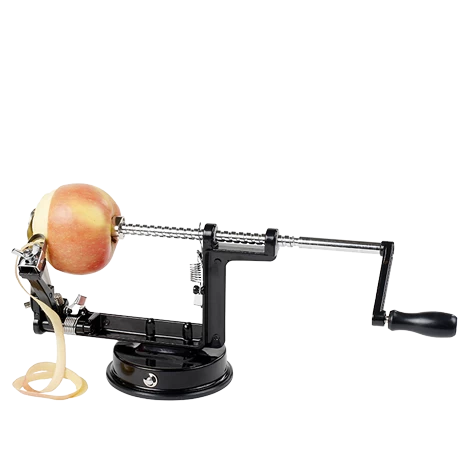 Med sugekop i bunden. Skræller, deler pg fjerner kærnehus. Sort