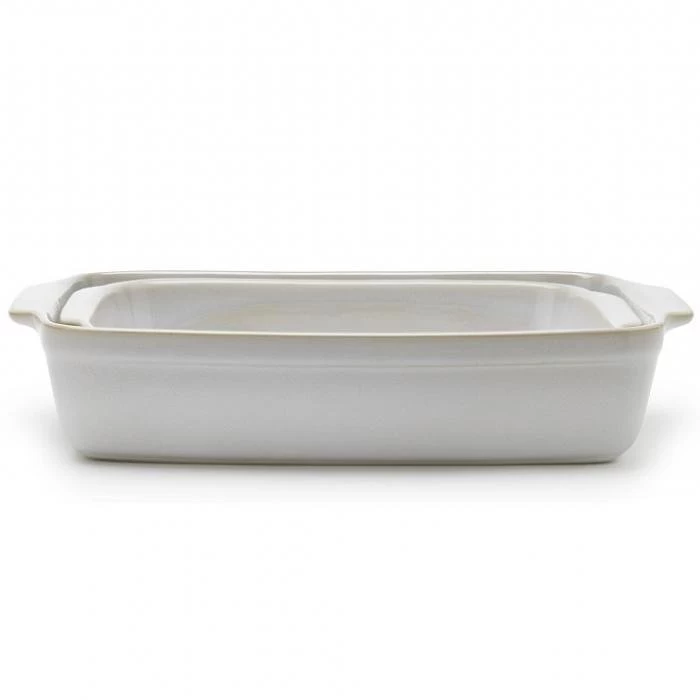 Fadsæt i hvid stentøj med 2 størrelser så du har god mulighed for tilberede og servere stort set alle typer retter.Fadene måler 38,5×25 cm og 33×21,5 cmHåndtag i siderne der gør det nemt at få fat.Tavola er en ekslusiv serie af stentøj i et moderne og tidløst formsprog.Stentøj er et robust materiale, til intensiv brug, så serien tåler både fryser, ovn, mikroovn og opvaskemaskine.