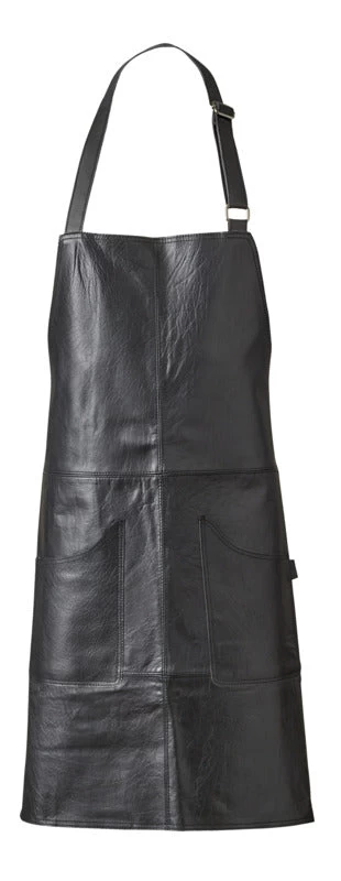 Lækkert og eksklusivt læderforklæde i bøffelskind.Justerbar strop og to lommer til grillredskaberne.65×80 cm