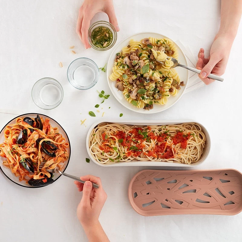 Så bliver det ikke meget nemmere at tilberede pasta. Lékué pastakoger kan klare alle typer pasta, spaghetti, nudler mv. Put din pasta i pastakogeren tilføj vand – følg kogeanvisningen på pastapakken ogserver. Nemmere bliver det ikke