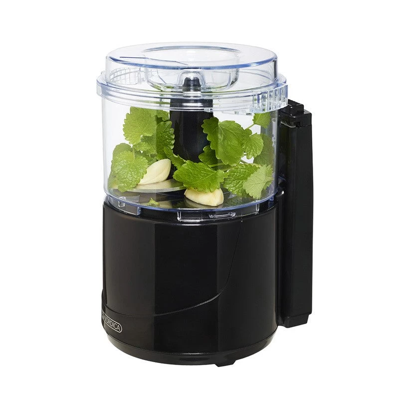 Nem og hurtig hakning afnødder, løg, kød, persille m.m. 4.500-5.000 omdrejninger min. Sikkerhedsmekanisme. Gummifødder. Ledningsoprul. Knivblade i rustfrit, nikkelfrit stål. Væske kanpåfyldes gennem låget under brug. 150 watt.