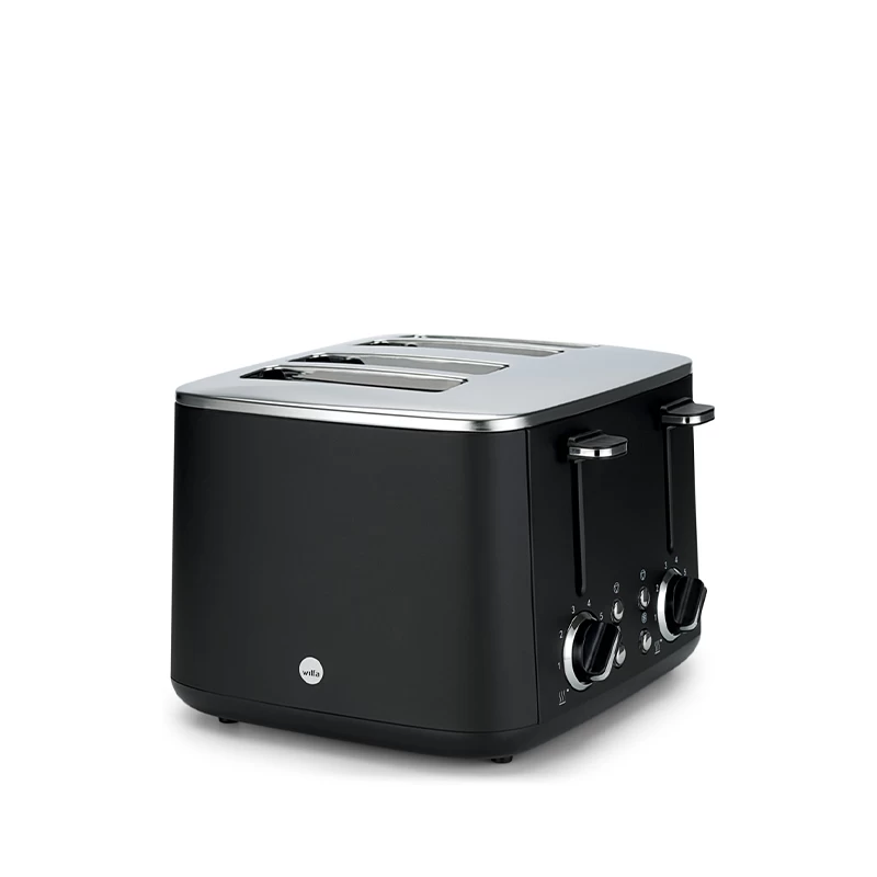 Family brødrister fra Wilfa med 7 ristningsgrader, plads til 4 skiver brød samt varmestativ til rundstykker, boller el. lign.1600 watt. Sort.5 års garanti.100 dages tilfredshedsgaranti.